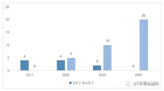 随着全球5G通讯技术的发展和推广,5G基站建设将为射频器件带来新的增长动力。 微波射频器件是实现信号发送和接收的基础部件,是无线通讯的核心,主要包括射频开关、LNA、功率放大器、滤波器等器件。其中,功率放大器是放大射频信号的器件,直接决定移动终端和基站的无线通信距离、信号质量等关键参数。 目前主流的射频器件有砷化镓、硅基 LDMOS、碳化硅基氮化镓等不同类型。其中,砷化镓器件已在功率放大器上得到广泛应用,硅基 LDMOS 器件也已在通讯领域应用多年,但其主要应用于小于4GHz 的低频率领域。 碳化硅基氮化镓射频器件同时具备了碳化硅的高导热性能和氮化镓在高频段下大功率射频输出的优势,突破了砷化镓和硅基 LDMOS 器件的固有缺陷,能够满足 5G 通讯对高频性能和高功率处理能力的要求。碳化硅基氮化镓射频器件已逐步成为 5G 功率放大器尤其宏基站功率放大器的主流技术路线。 碳化硅衬底可分为导电型和半绝缘型。半绝缘型具有较高的电阻率(电阻率≥105Ω·cm),主要应用于制造氮化镓射频器件。通过在半绝缘型碳化硅衬底上生长氮化镓外延层,制得碳化硅基氮化镓外延片,可进一步制成氮化镓射频器件。目前,半绝缘型碳化硅衬底的制备仍存在技术难点,掺钒工艺复杂,成本很高。 ![]() ![]() 据 Yole Development 预测,2025年全球射频器件市场将超过250亿美元,其中射频功率放大器市场规模将从2018年的60亿美元增长到2025 年的104亿美元,而氮化镓射频器件在功率放大器中的渗透率将持续提高。至2025年,功率在 3W以上的射频器件市场中,砷化镓器件市场份额基本维持不变的情况下,氮化镓射频器件有望替代大部分硅基 LDMOS 份额,占据射频器件市场约50%的份额。 随着 5G 市场对碳化硅基氮化镓器件需求的增长,半绝缘型碳化硅晶片的需求量也将大幅增长。到2025年,半绝缘型碳化硅衬底市场规模有望达到 40.35 亿元,4英寸逐步从5万片市场减少到2万片,6英寸晶圆将从5万片增长到10万片;2025~2030年:4英寸晶圆将逐渐退出市场,保守估计6英寸晶圆将增长至20万片。 |